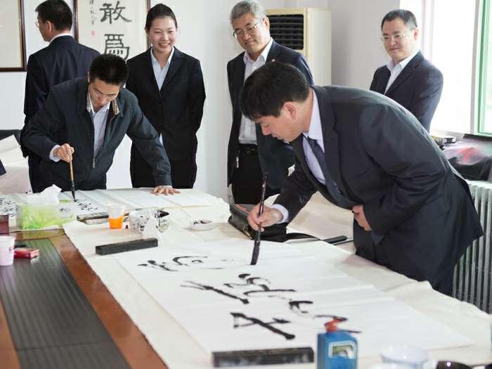 为弘扬传统文化,丰富员工业余生活,5月6日上午,必一运动中国官方网站-必一(中国)举办了首届书画艺术学习交流活动。本次活动邀请了中国书法家协会会员孟云飞博士、中国书法家协会理事张铜彦先生、中国书法家协会编辑出版委员会副主任王荣生教授、人民艺术家协会理事于瑛先生等国内知名书画大师,各位书画大师在活动现场进行了艺术创作表演,挥毫泼墨,交流技艺,为必一运动中国官方网站-必一(中国)留下了数十副墨宝,还对部分员工的书画作品进行了悉心指导。公司员工现场欣赏了书画大师的艺术创作,并聆听了有关书画艺术鉴赏知识的介绍,部分员工还在活动现场进行创作,听取书画大师的讲解示范和点评。