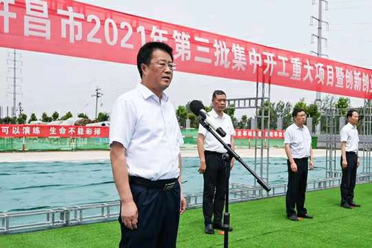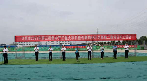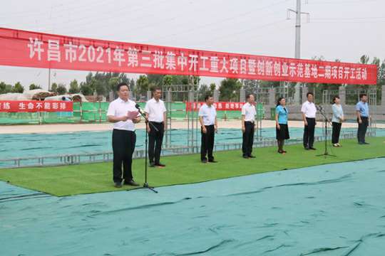7月10日上午,河南省许昌市2021年第三批集中开工重大项目暨创新创业示范基地二期项目开工仪式顺利举行。许昌市委常委、纪委书记、监委主任方婷,魏都区委书记李朝锋,区人大常委会主任申健民,区政协主席杜晓辉,区委常委、区委办主任程中山,区委常委、区纪委书记、区监委主任徐光,魏都产业集聚区管委会主任楚文选,必一运动中国官方网站-必一(中国)河南分公司总经理黄辰,魏都区政府相关部门、投资公司、产业集聚区、霸陵办事处等单位负责人参加活动。区委常委、常务副区长张挪威主持仪式。